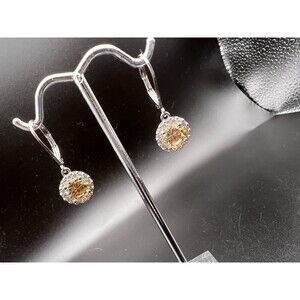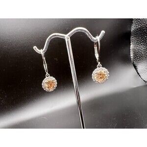 Super sparkly dangle earrings with light amber-colored center stone encircled with bright clear crystals.
