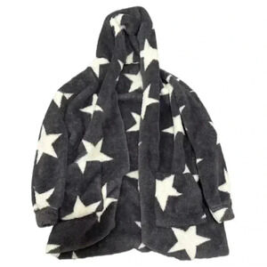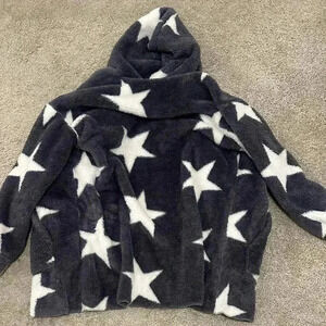Super Star SHEIN Blanket like Sweater Hoodie White Stars on Navy/Grayish Color