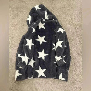 Super Star SHEIN Blanket like Sweater Hoodie White Stars on Navy/Grayish Color