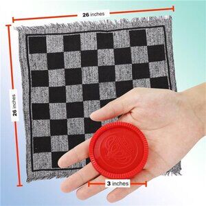 🧿✔️ Big Checkers Board Game For Family Gatherings! Lovely gray cloth checkers game with green fabric strands, a sure hit in family game nights, weekend picnics, birthday parties, holiday party games, and get-togethers. Have a great time playing classic giant checkers games with your loved ones. And yes, you can also play the vintage 3-in-a-row Tic Tac Toe and the Super Tic Tac Toe game with this amazingly huge 3-in 1 giant checkers game!