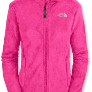 this is a pink fleece from the north face and it is SO comfortable! Incredibly warm and soft, it's perfect for winter. It is a berry pink color!