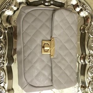 Every piece brand new 🔹New with tags 🔹Vegan purse with shoulder & messenger style chain in arctic grey, two beautiful and unique 18k goldfilled charms w their respective 18K goldfilled chains ( heart locket + hamsa) & an expandable cocktail ring (available in ivory & pastel emerald). SuperPOSH deal!!!!