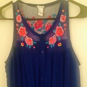 Super light weight and comfortable romper. Top part is see through with flower details. It has pockets which gives it a more relaxed vibe to it.