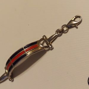 Missing a small area of enamel and need cleaned. This gorgeous Gucci equestrian horsebit bracelet is super rare. The red and blue enamel as well as the horsebit details are signature Gucci! Bracelet us missing a small blue block of enamel. I got an enamel kit to try and fix it but just haven't had the time :(..Hopefully someone will be able too or take to an independent jeweler. Measures about 7.25" around. Please ask questions! Everything I sell is 100% authentic, Thank you!!!