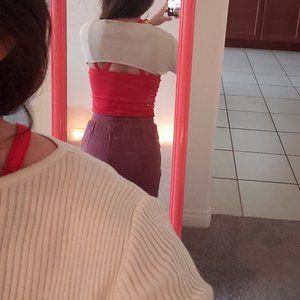Super cute, boleros are back in style?? I love how you can show off an interesting tank top and still keep your arms warm, it is a super sexy look. I ended up tailoring a different sweater to get the look I want so now have this extra top laying around that I never wore!! Originally 72$ but that was way too much money for me to pay for it so you definitely don't have to. One size, I would say best xs-M.