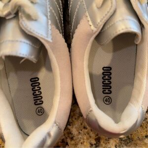 Super cute Casual silver and white sneakers similar to Adidas Sambas- brand new!