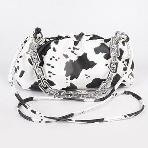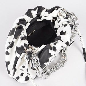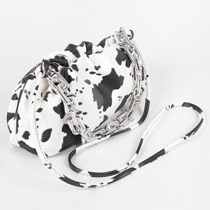 Faux Leather Cow Print Clutch W Link Chain