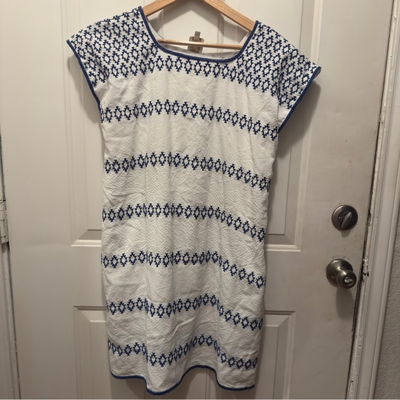 Super cute J. Marie Blue and White Geometric Embroidered Mini Dress