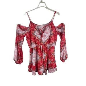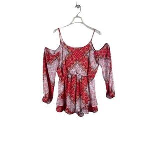 This cute romper is so flattering and comfy. The shorts have ruffles. The cold shoulder detail keeps you the perfect temperature.