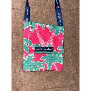 Super cute! Simply Southern Pink Green Crossbody Bag Purse with Palm Trees Lightweight GOOD CONDITION MINOR WEAR
