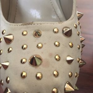 These pair of platforms are super unique with there gold studs. These shoes were worn a couple of times and have few stains near the front of the shoe which you can see in the pictures