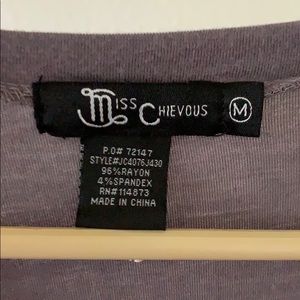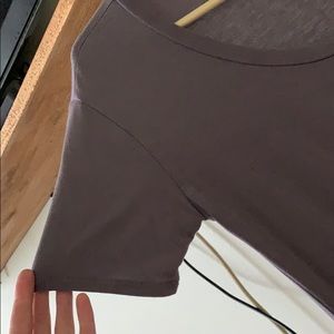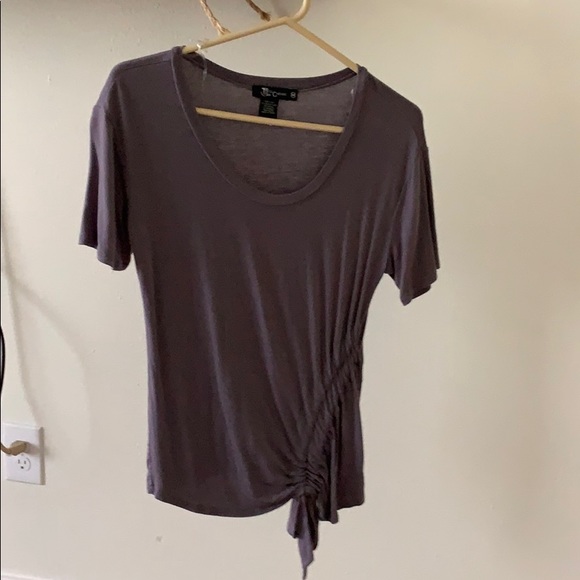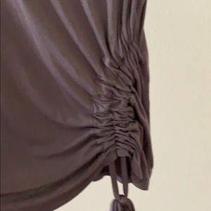 The color is like a grey/purple. It is very soft and has a adorable side scrunch detail never worn
