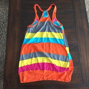 Body central, size small tank! In good used condition! I loved this tank, adorable on! I always layered it on top of a bright yellow tank☀️ some piling throughout tank as seen in picture 3 but really not noticeable when on!