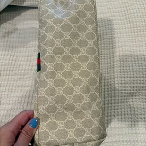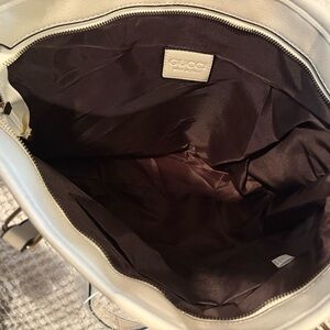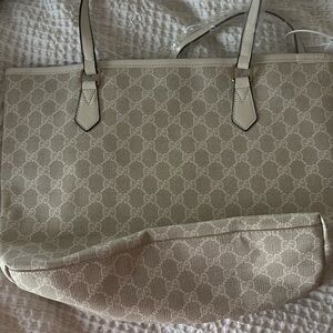 Chic tote with iconic monogram. Cream color adds elegance. Ideal for daily use.
