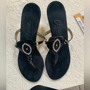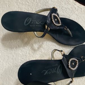 Only worn inside. Like new. Kitten heels. Black with rhinestone accents. Cute heels. .