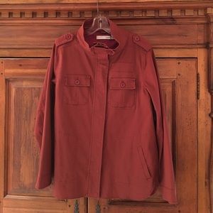 Not really a blazer, cut like a jean jacket but not pure denim. Really great burgundy, wine colored. Never worn.