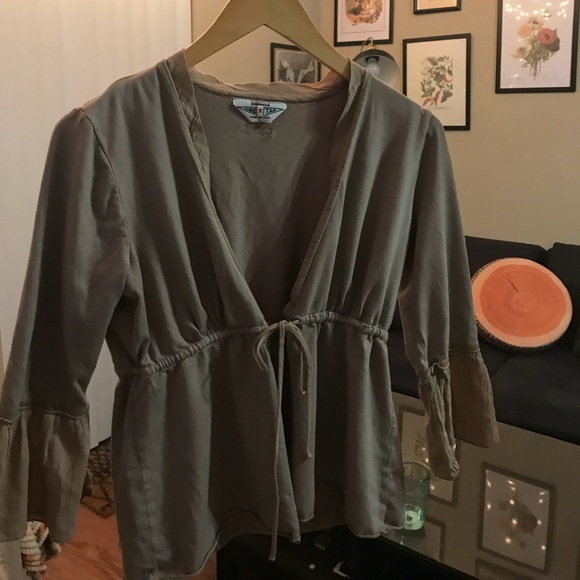 Tan blouse with 3/4th sleeves. Can be worn open or closed!