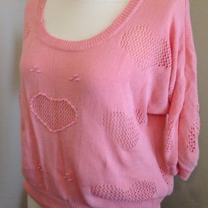 3/4 sleeve length pink sweater. Super cute. Hearts are see through. Elastic around waist. Great condition!