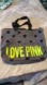 Great condition, clean and a smoke free home. Bag is a black and grey polka dot LOVE PINK zippered canvas tote. Love Pink is in lime green. Measures 19” across and 17” high.