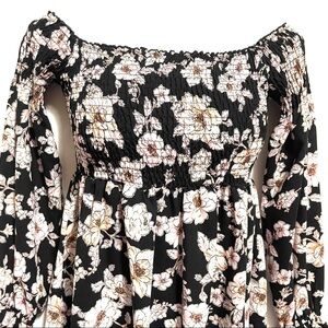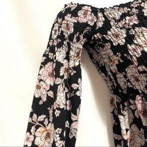 Super cute top, size S, the brand tag has been cut out, but looks like Umgee, cotton material, gathered spandex around bust, can be worn on or off the shoulder! Flowing sleeves with elastic around the wrist! In excellent preloved condition!