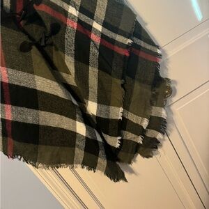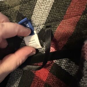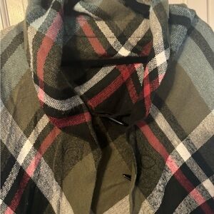 Love love love this! It really just accents any outfit so well. Warm but not bulky or overpowering. Trendy plaid. Easy clasps for on and off. Like New!