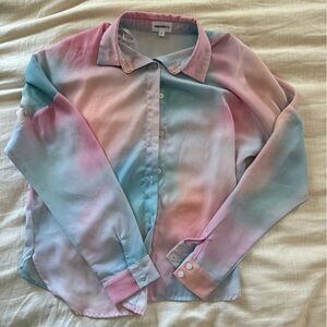 Elevate your style with this chic pastel button-up blouse. Perfect for any occasion, this top features a blend of soft colors for a fresh look.
