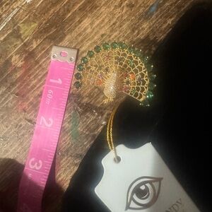 This stunning gold and green peacock ring adds a touch of elegance and fun to any outfit. Perfect for special occasions or everyday wear.
