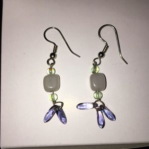 Green, white and purple earrings Missing one if the purple ends never been worn