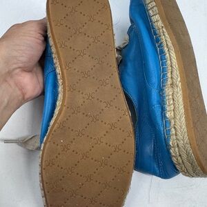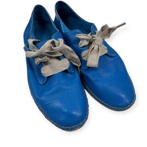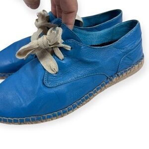 Super soft calf leather lace up espadrilles in teal size 6 no brand