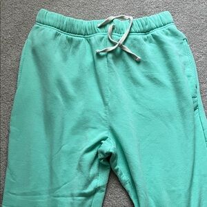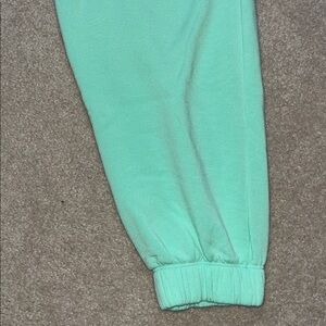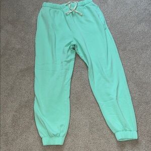 Super soft and cozy joggers in a beautiful seafoam green. High waisted. Elastic waistband with drawstring. Front pockets. Some pilling. Size XL.