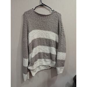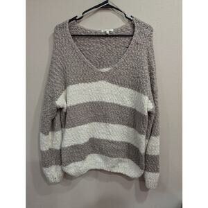 Super soft neutral striped v-neck cotton blend sweater by Miracle USA size M/L