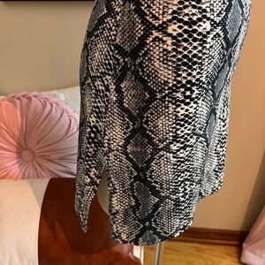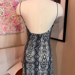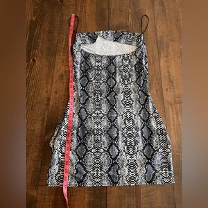 This snake skin mini dress for women is a stylish addition to your wardrobe. With side slits and a low back, it's perfect for a party or cocktail event. Made from a blend of polyester and cotton, the dress is both comfortable and durable. The dress length is short and the theme is snake, making it a unique and eye-catching piece. It's available in size small and is suitable for any woman who wants to make a statement.
