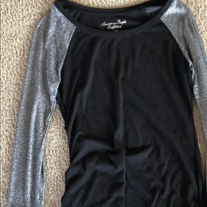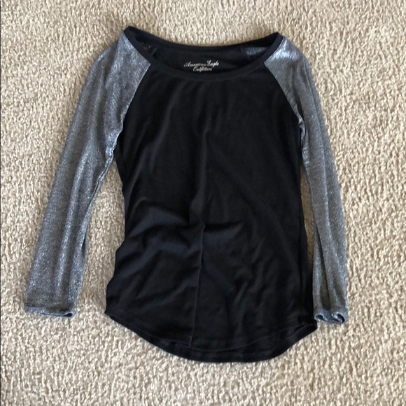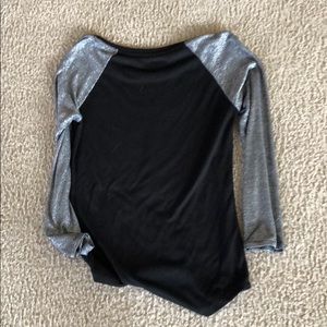 Grey sleeves have some shimmer to it. Super comfortable and so soft. Barely been worn before and no signs of damage at all. Fits true to size.