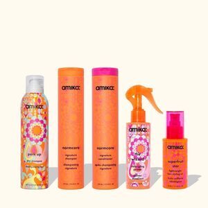Amika hair care set Includes perk up dry normicare shampoo + , conditioner, super fruit 3-1 styling oil, detangler