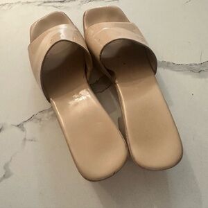 Super used size 6 vintage platform tan slides