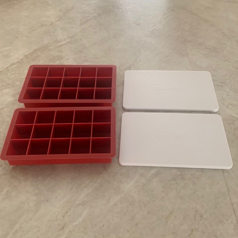 Casabella silicon container for freezing individual amounts of stock, cookie dough, etc. Includes lids.