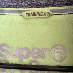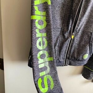 Heather Gray and Lime Green dri-fit material, Superdry track jacket.