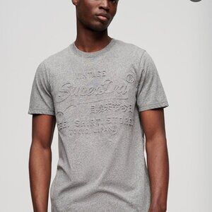 SuperDry Gray Men's Vintage Logo Store Embossed Short Sleeve T Shirt