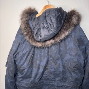 SuperDry SDX Parka Jacket Men's 2XL Blue Camo Faux Fur Trim Hood NWT