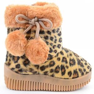 Super Furry Camel Leopard Toddler Pom Winter Boots Vegan Outdoor