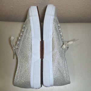 Preowned. Glitter gold sneakers. In great shape only noticed slight scuffs as pictured. Notice photo of measurement 10 inches bottom of shoe.