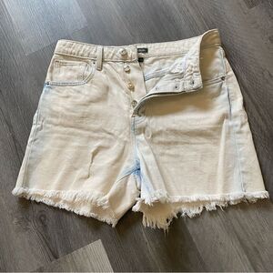 Super sexy cutoff bleached denim shorts from Wild Fable. They’re giving Streetwear festival grunge summer vibes. Super high rise frayed hem with a distressed thigh rip on one leg. Size 4, button-fly closure. material: 100% cotton {30% recycled cotton}. Please see photo section for approximate flat measurements + my model stats for fit reference.