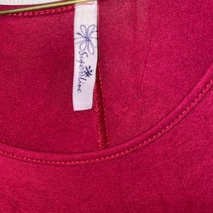 Super Line Top Perfect with Leggings it will always cover your bottom !! Size Large lite weight fabric very pretty color….in Great used condition!