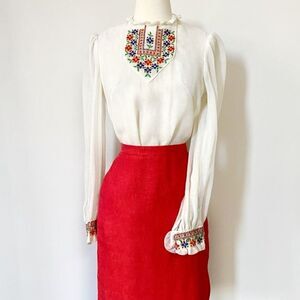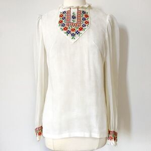 Super RARE Vintage 1960s Floral Embroidered Peasant Blouse