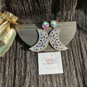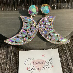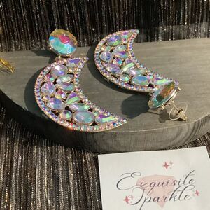 🌙💖Super Sparkly Celestial Iridescent Crystal Bead Post Drop Dangle Earrings🌙