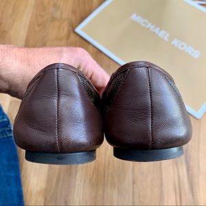 These adorable Delphine flats by Michael Kors are the perfect little flats for jeans, skirts, dresses... just about everything. Designed with MK jacquard logo and gold tone details, these pre-loved shoes are in excellent condition with minimal wear on the rubber soles.