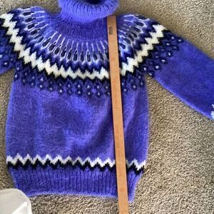 SuperTanya Mohair Icelandic Nordic Pullover Sweater Handmade Blue