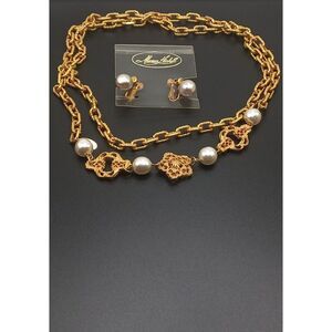 Superb. Miriam Haskell Gold/Pearl Filigree Pearls Necklace & Faux Pearl Earrings