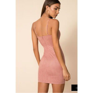 Superdown Agatha Mini Dress Pink Faux Suede Bodycon Spaghetti Strap Sz M