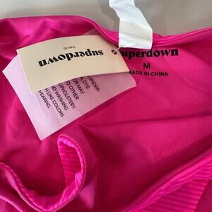 Superdown Barbie Pink String Bikini Bottom MEDIUM High Cut Cheeky $40 NEW